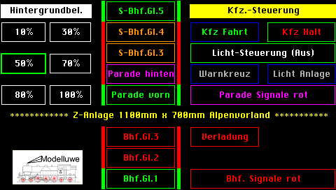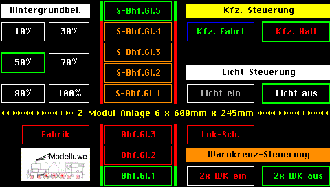 Rechts: Pultprogrammierung für die Tischanlage 110cm x 70cm