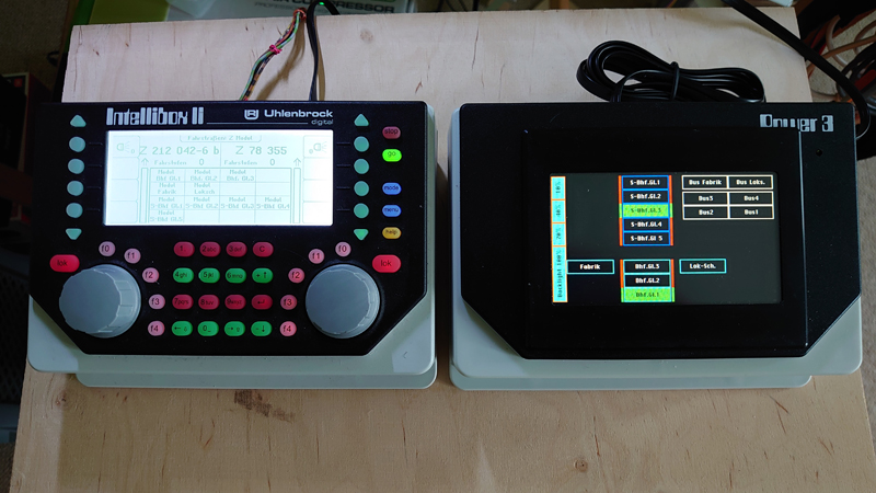 Links: So sieht das Pult in Verbindung mit der Intellibox aus. Das Gehäuse für den Einbau habe ich mir von der Fa. Uhlenbrock liefern lassen.
