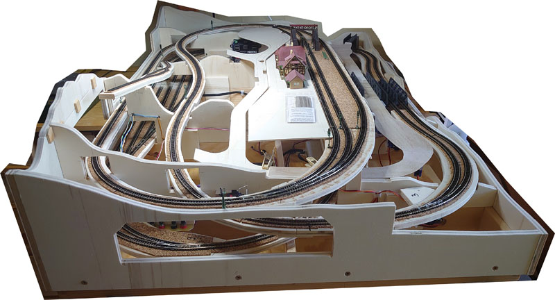Die Anlage könnte eine Berglandschaft im Voralpenland darstellen. Es ist mehrfach verschlungener "einfacher" Kreis mit einem dreigleisigen Schattenbahnhof und zwei zusätzlichen Abstellgleisen. Im Hauptbahnhof gibt es drei Durchfahrtsgleise und ein kleines Abstellgleis. Der Bau des Rahmens mit den Spanten, welche im Februar 2021 begann, ist abgeschlossen. Verwendet wird für die Hauptbahn auschließlich das Gleissystem von Märklin. Die Gleise mit 4,5mm Spurweite für die Bergbahn fertige ich mir selbst an.